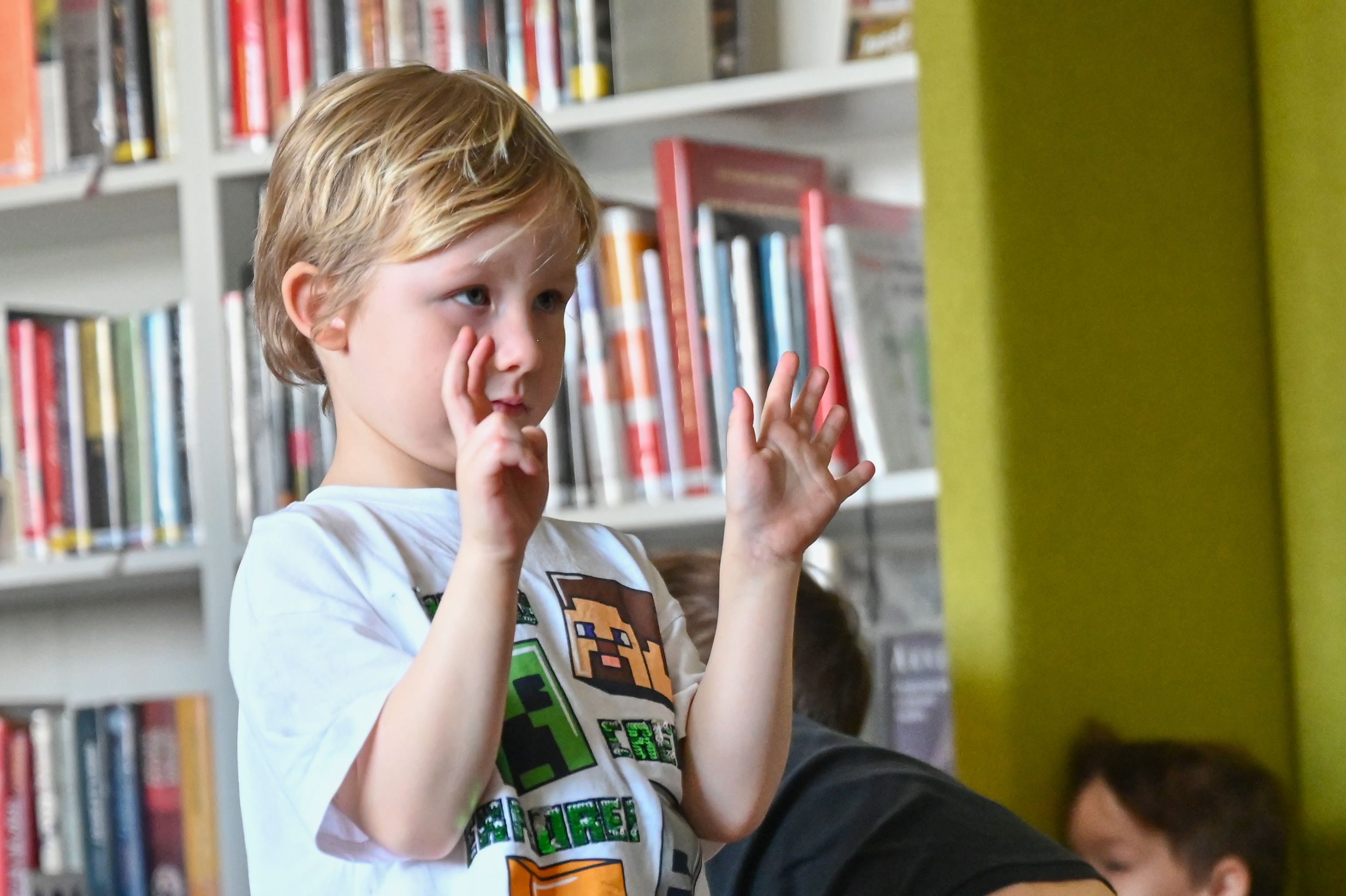 Během dopoledne si prohlédly pestrou nabídku knížek pro nejmenší, se zaujetím naslouchaly čteným ukázkám a obdivovaly krásné ilustrace. Nechybělo ani sdílení dojmů a nadšení z příběhů, které v dětech probouzejí zvědavost i radost. Společně si také povídaly o tom, jak se ke knížkám hezky chovat a proč si jich vážit.